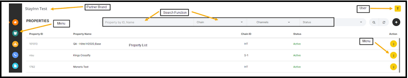 Menu / Access For A Specific Property Modify Chain > Link property to an existing chain ID Property profile > Quick access to property profile Rates & Availability > Quick access to property rates and availability page User > Add user and view list ...